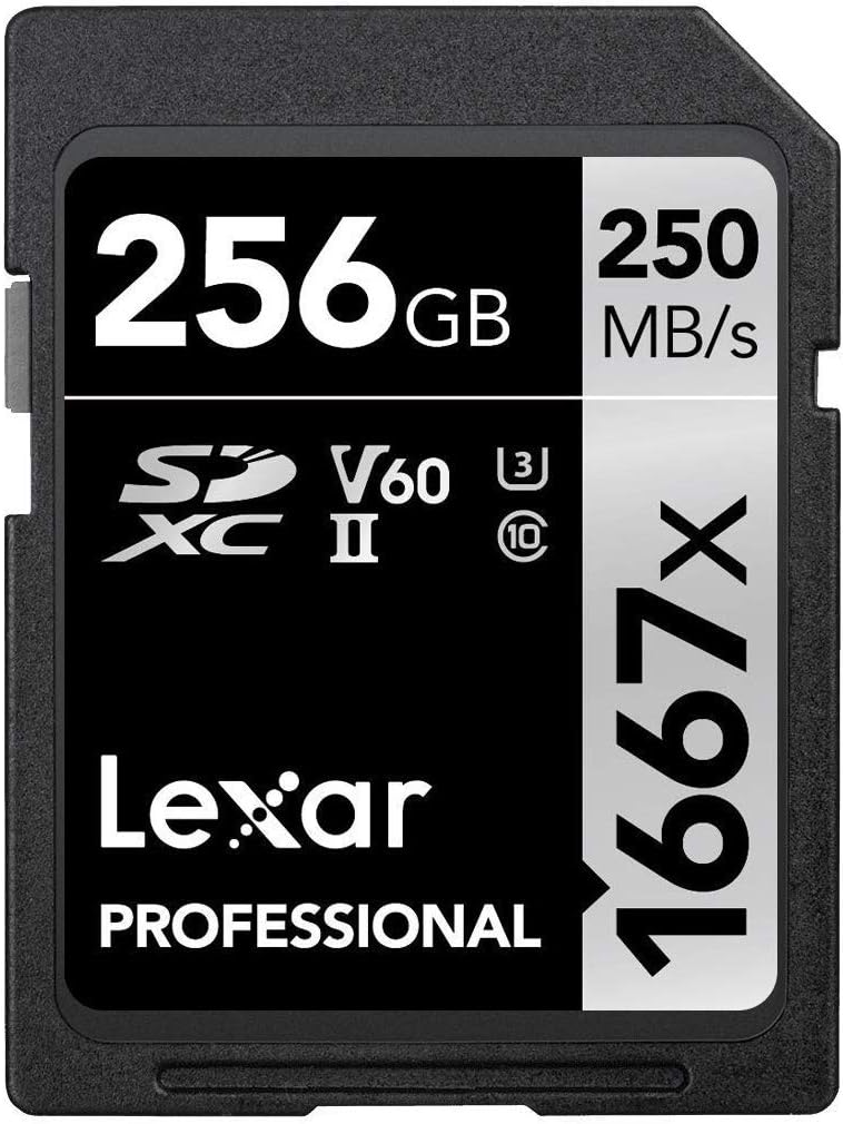 Lexar Professional 1667x 256GB SDXC UHS-II Memory Card – great speed for the price. Make sure you only buy good brand names of memory cards.
