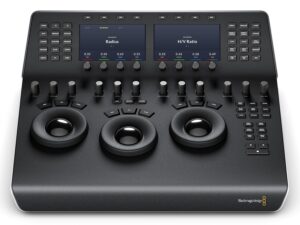 The big daddy of color grading panels, the Blackmagic Design DaVinci Resolve Mini Panel (also comes with Resolve Studio Software). Expensive, and only works with Resolve, but this really is the best.